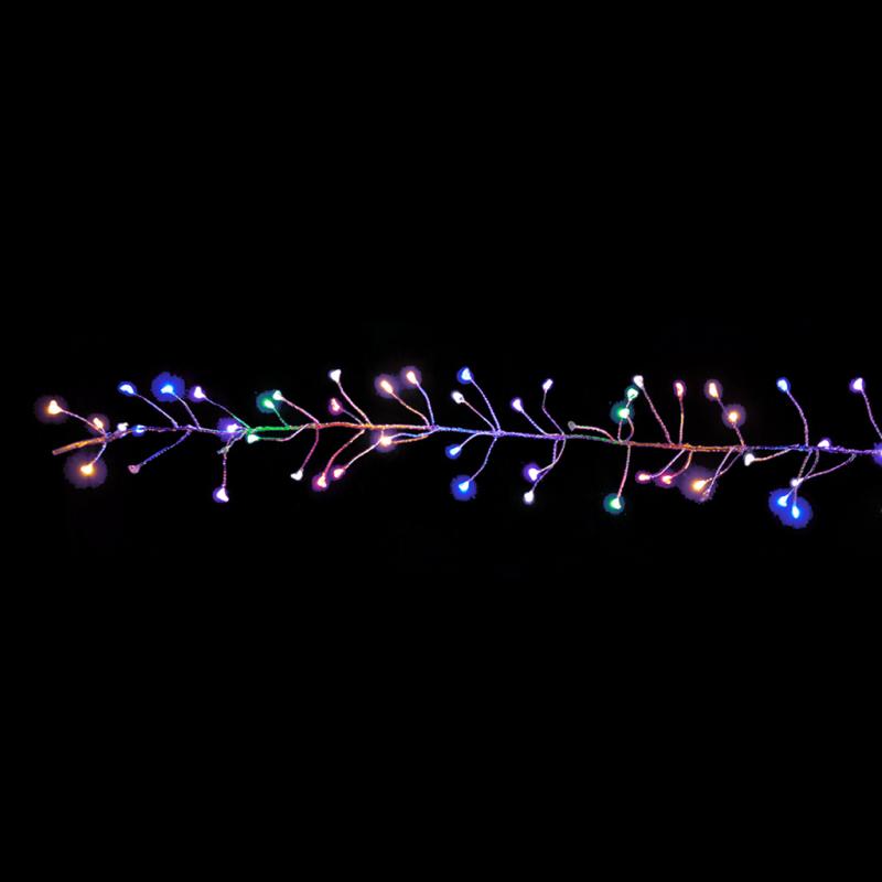 | These Mini-Crab lights have 300 multi-colored micro mini LED random twinkle lights, a total light length of 7.5 feet with a 6-foot lead. They have ultra-thin positionable/flexible silver wire, are UL-certified, and have an adapter plug. They can be used indoors and outdoors. |