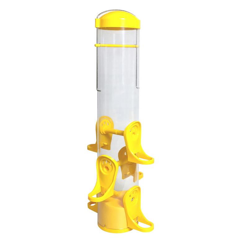| The Stokes Select 15 in. Thistle Finch Feeder is a vibrantly yellow tube feeder constructed of plastic that protects and contains seed while allowing you to see when the feeder needs to be refilled. Finches love its ergonomic U-shaped perches, while 6 strategically placed ports provide feeding space for many birds simultaneously. Each port features 3 feeding holes, maximizing seed availability for hungry finches. A metal hanger comes pre-attached for convenient hanging. The feeder disassembles for easy cleaning, while its cap slides up the hanging wire for easy filling. This 15 in. thistle feeder is attractive to many varieties of finches, turning your backyard birding station into a finch feeding destination! 1.7 lb thistle |