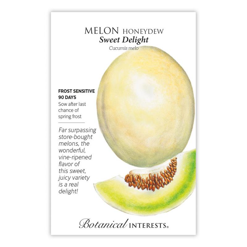 Homegrown honeydews are far superior to grocery store melons. Vine-ripened 'Sweet Delight' has an unbelievably sweet, almost wine-like flavor. Each melon is 7" x 8" weighing between 7 and 8 pounds, with light green flesh and exterior.