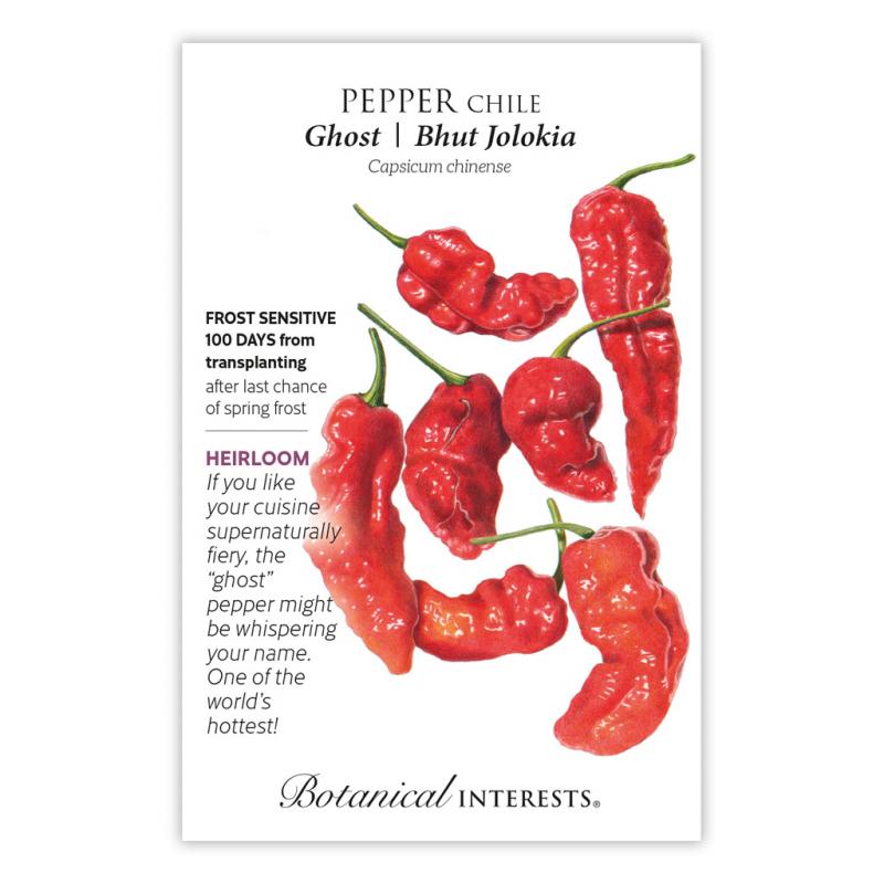 | Originating in India, the 'Bhut Jolokia' is one of the hottest, naturally-occurring peppers, rated over 1,000,000 Scoville heat units. That's up to 400 times hotter than a jalapeño. Dehydrate and grind the peppers into chili flakes to add a fruity, fiery kick to your plate. Use it to spice up salsa, hot sauce, or Indian cuisine if you are brave of heart and palate! |