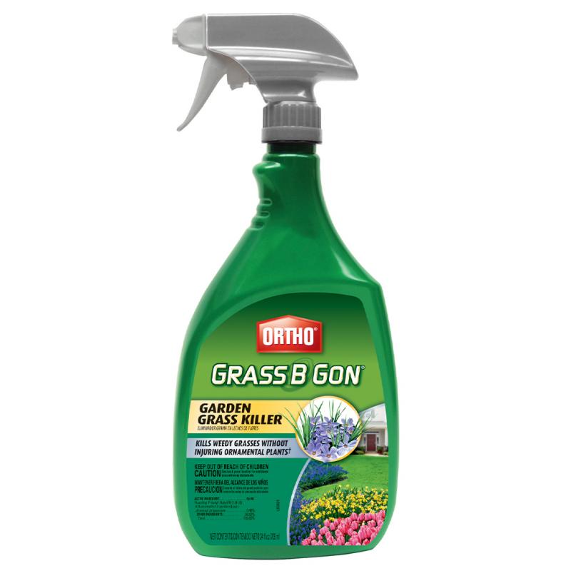 Description: Garden Grass Killer kills crabgrass, fescues, bermuda and other annual and perennial grassy weeds. Won't harm landscape plants - guaranteed! Use in and around ground covers, flowers, landscapes and shrubs. No mixing or measuring. Active ingredients: 0.48% Fluazifop-P-butyl. 24 oz. ready to use.