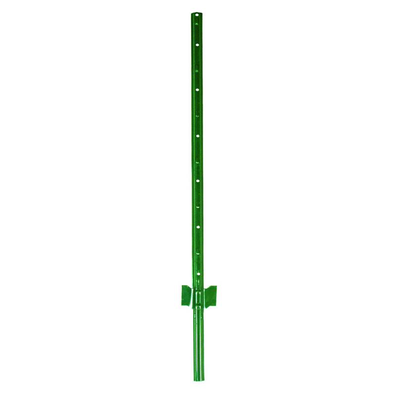 Provides sturdy support to fencing projects and has tabs for attaching fence. Constructed of formed and stamped sheet steel with a green powder coated finish.