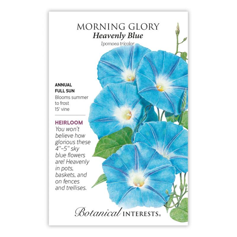 | This showy climber will dazzle all who are lucky enough to behold it! Morning glory is so named because the flowers open in the cool of morning, then close when it gets too hot. On cloudy days and in the fall, the blossoms stay open all day. Caution: Parts of this plant are toxic if ingested. These seeds can not be sold in Arizona or as per state regulations. |