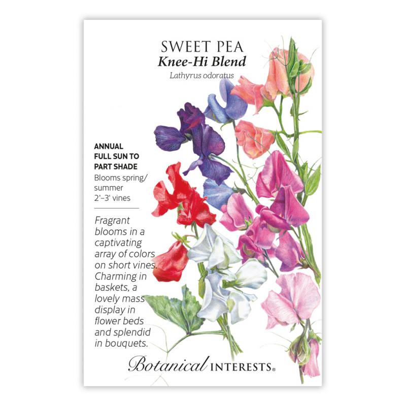 | The light scent and delicate beauty that delights sweet pea lovers, but with shorter vines needing little or no support. Knee-High Blend offers a symphony of colors to brighten up your garden, short trellis, or hanging basket, to the delight of pollinators. Multiple florets of blossoms that average 1" for excellent cut flower bouquets.Caution: Parts of this plant are toxic if ingested. |