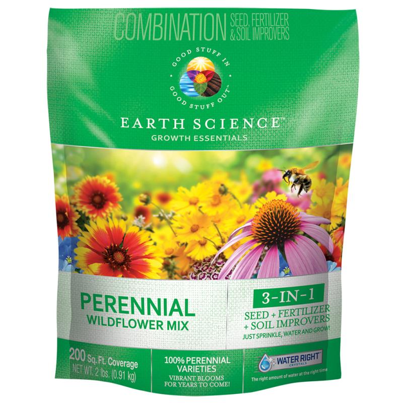 | Brighten any landscape with a burst of brilliant, colorful flowers. Earth Science makes it easy with this 3-in-1 formula that contains natural wildflower seed, fertilizers, and natural soil improvers. 100% perennial varieties with vibrant blooms for years to come. 2lb bag covers 200sq ft, 6 per case. |
