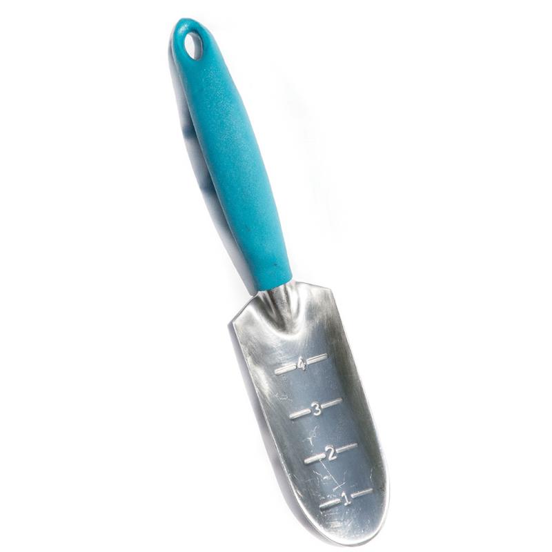 | This transplanter has a polished cast aluminum head and easy grip handle. It is lightweight and easy to hold. Each case includes the three Splash colors: purple, blue, and green. |
