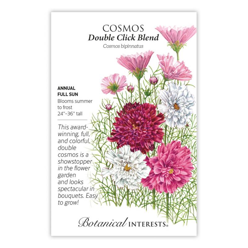 | Double Click Blend produces an infinite number of gorgeous, mostly double (with some semi-double) pink, white, and carmine red chrysanthemum-like blooms. Once established, it is easy to care for and drought-tolerant. Perfect for cottage gardens and any area where you want to add a pop of pretty color or attract hummingbirds and butterflies. A Fleuroselect Novelty Award winner. |