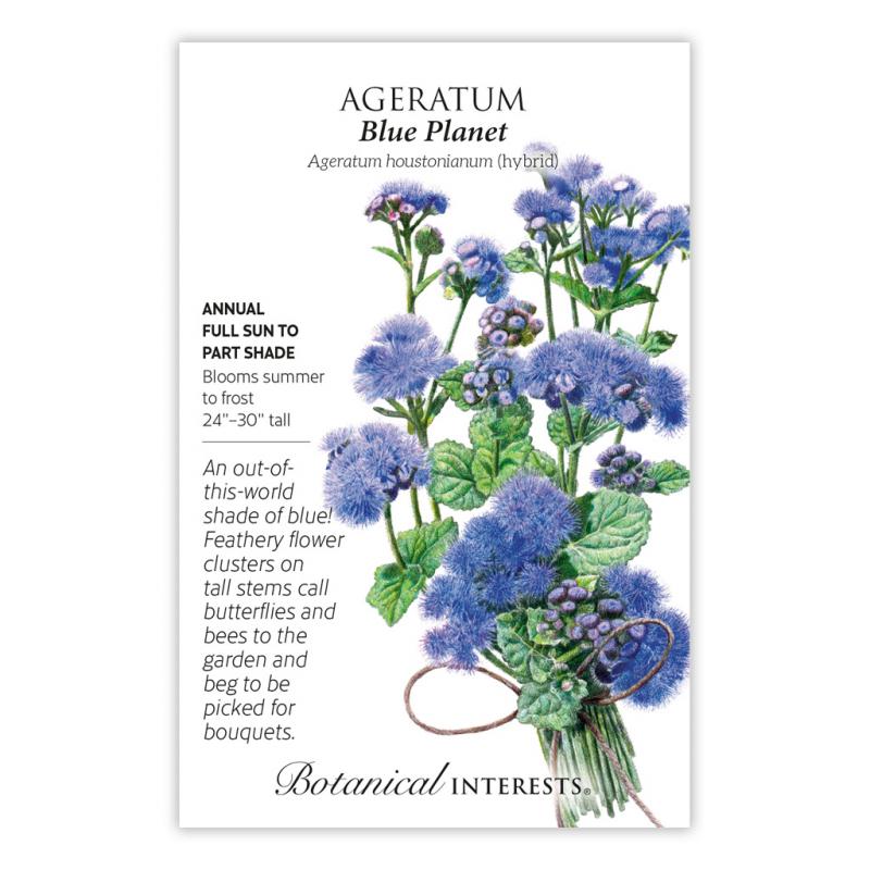 | Long-lasting blooms like tiny explosions are out of this world in gardens or containers, and especially planted in mass. This tall ageratum branches without being pinched back and flowers prolifically. Accents well with bright white flowers in the garden bed or in bouquets. |