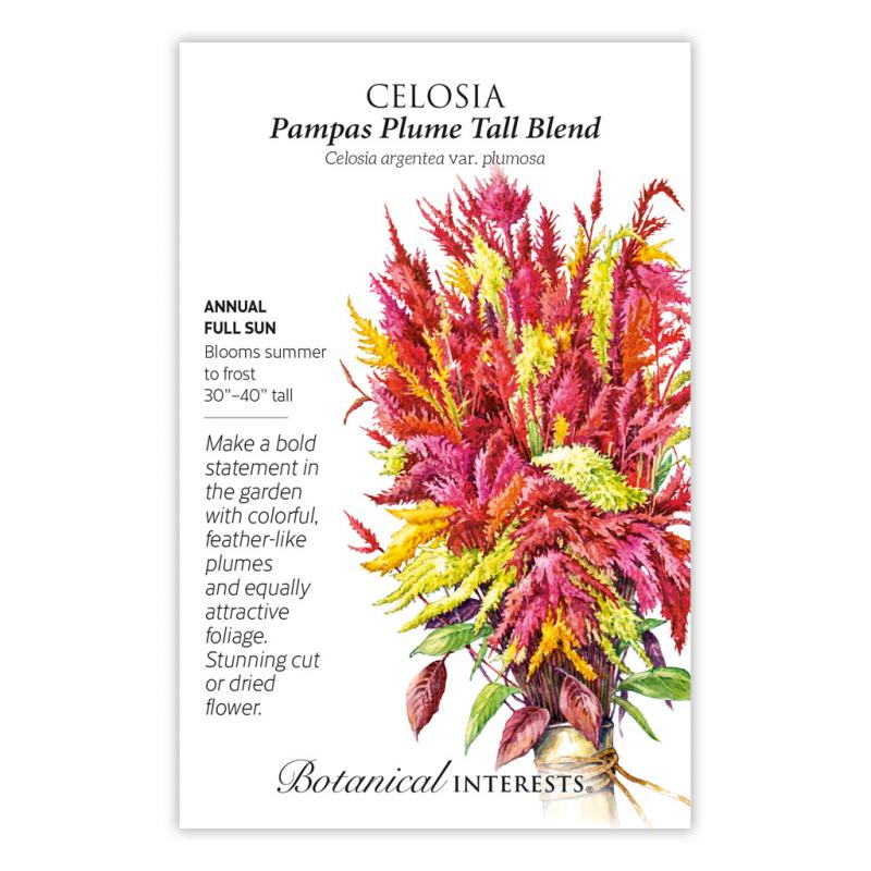 | Amazement in a vase! A must-have for bouquets, these large, feathery, golden-yellow to scarlet plumes stand out on long, straight stems and attract pollinators. In the garden, the multi-branching plants are noted for their exceptionally beautiful foliage, and along with height, are perfect for the back of the flower bed. Plants handle heat with ease and are fairly drought tolerant. Also known as Prince of Wales feather. |