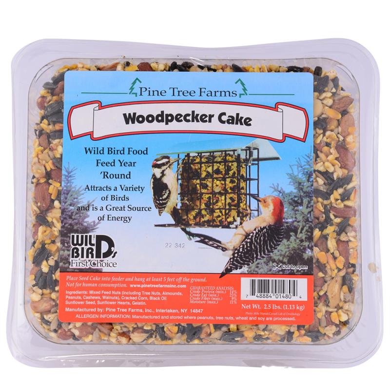 | Wild Bird Woodpecker Cake is developed for year 'round feeding of wild birds. Held together with a natural binder that holds the seeds and nuts together in all kinds of weather. A must for serious wild bird lovers. Ingredients include peanuts, almonds, cracked corn, sunflower hearts, black oil sunflower seed and mixed tree nuts. |