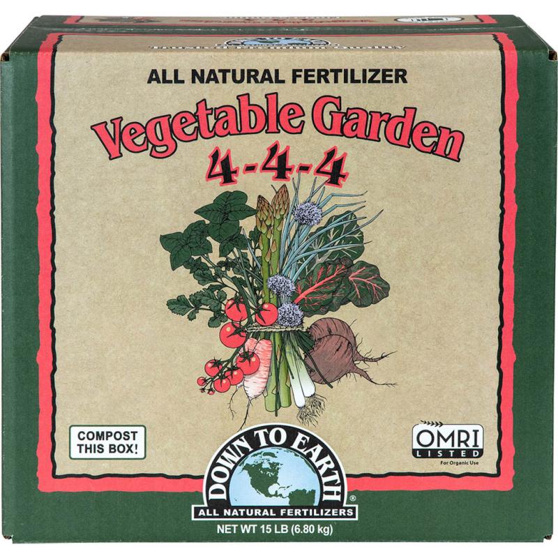 | Down To Earth Vegetable Garden 4-4-4 Fertilizer. Full of powerful plant nutrition to help your garden grow! Vegetable Garden's all-purpose formulation provides a perfect start for your sprightly spring veggies, gives your summer tomatoes super-powers and is fantastic for growing your favorite fragrant herbs. A versatile mix for backyard gardens & hobby farms, Vegetable Garden's broad nutrient profile is ideal for use throughout the growing season. Ingredients: Fish Bone Meal, Alfalfa Meal, Feather Meal, Langbeinite, Basalt, Potassium Sulfate, Dolomite and Kelp Meal. OMRI Listed and CDFA Listed (Registered Organic Input Material). |