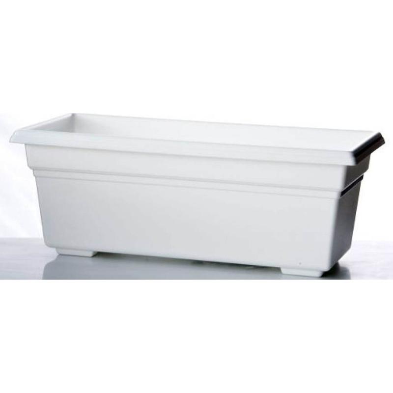 Description: Stylish planters with classic lines are constructed of durable plastic with an attractive matte finish. Lightweight but durable, with removable drainage plugs. Each planter features a deep root zone to promote healthier plants. Can be used with Novelty Flower Box Trays. Five year warranty! White.