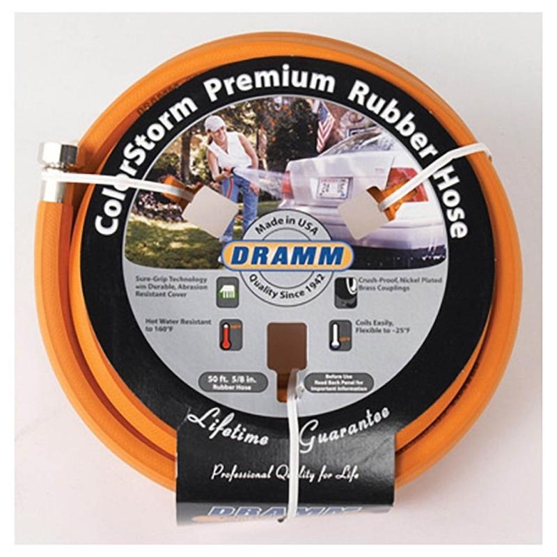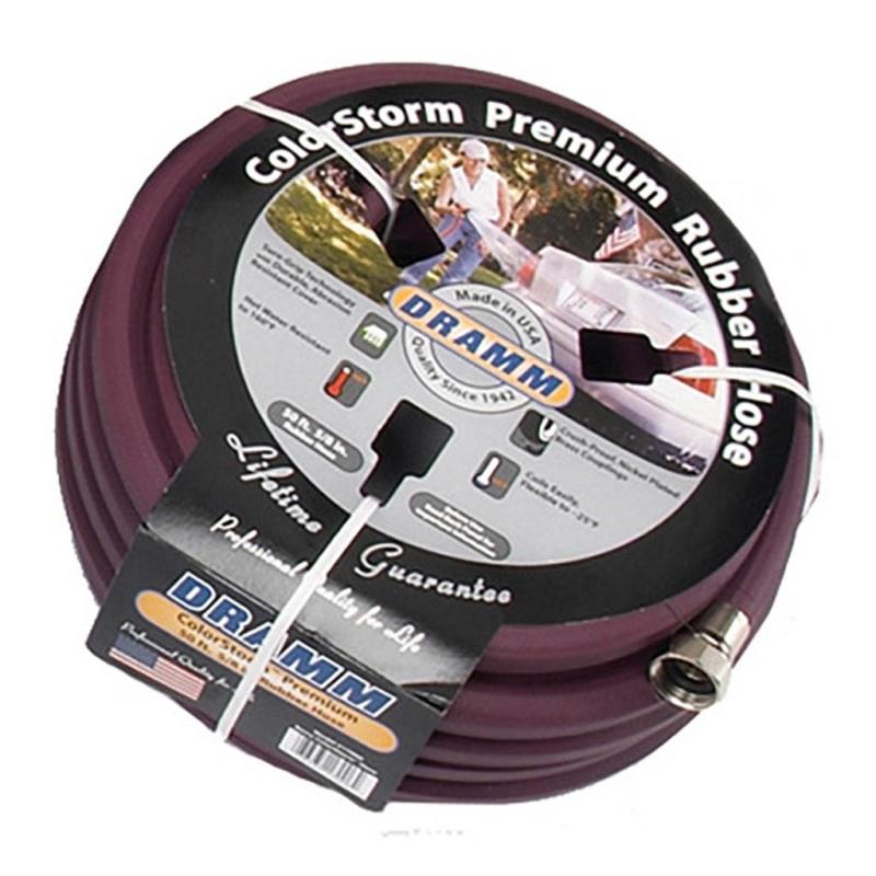 | Dramm ColorStorm™ premium rubber hose is made of EPDM rubber, this hose won't crack, check or separate. Sure-Grip™ technology resists kinking and coils easily, even in cold weather. Durable, abrasion resistant cover in six brilliant colors that will stand out in your yard. Professional quality for the home owner. Made in the U.S.A. with a lifetime guarantee to the consumer. |