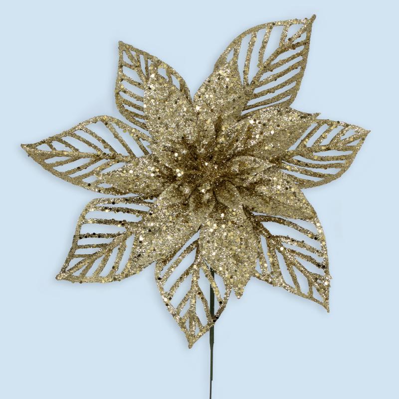 Poinsettia Pick Gold Glitter Poinsettia Pick