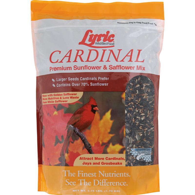 | Lyric Cardinal Mix hand-crafted mix is designed to attract more Cardinals to your feeder. This beautiful blend features a variety of sunflower seeds that attract wild birds with prominent seed-cracking bills, like cardinals, jays and grosbeaks. This mix also includes golden safflower, an organic, chemical-free hybrid safflower. |