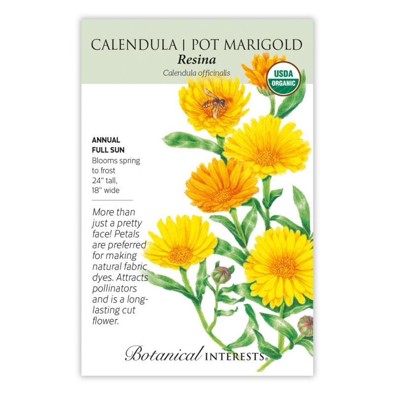 | Bright yellow, daisy-like blooms will catch your eye, and the exceptionally resin-rich petals of 'Resina' will delight herbalists. Calendula is very frost tolerant and may even be seen blooming in snow! Calendula petals have been used for medicinal purposes for hundreds of years and are also edible. Mix into egg dishes, casseroles, baked goods, salads, or sandwiches. |