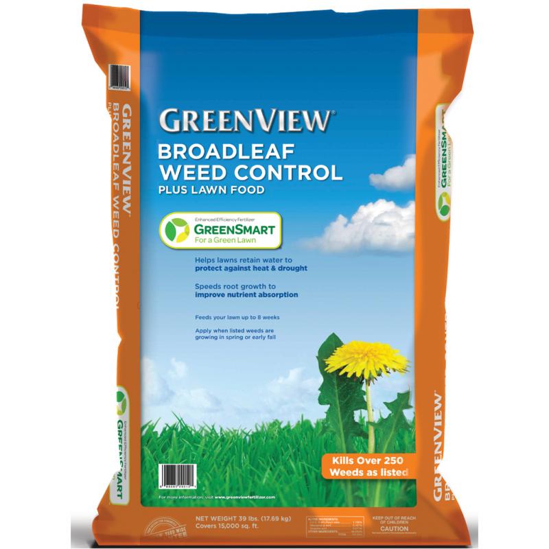 | Broadleaf Weed Control Plus Lawn Food with GreenSmart helps lawns retain water to protect against heat and drought. Speeds root growth to improve nutrient absorption. Feeds your lawn up to 8 weeks. Apply when listed weeds are growing in spring and early fall. Kills over 250 weeds as listed. |