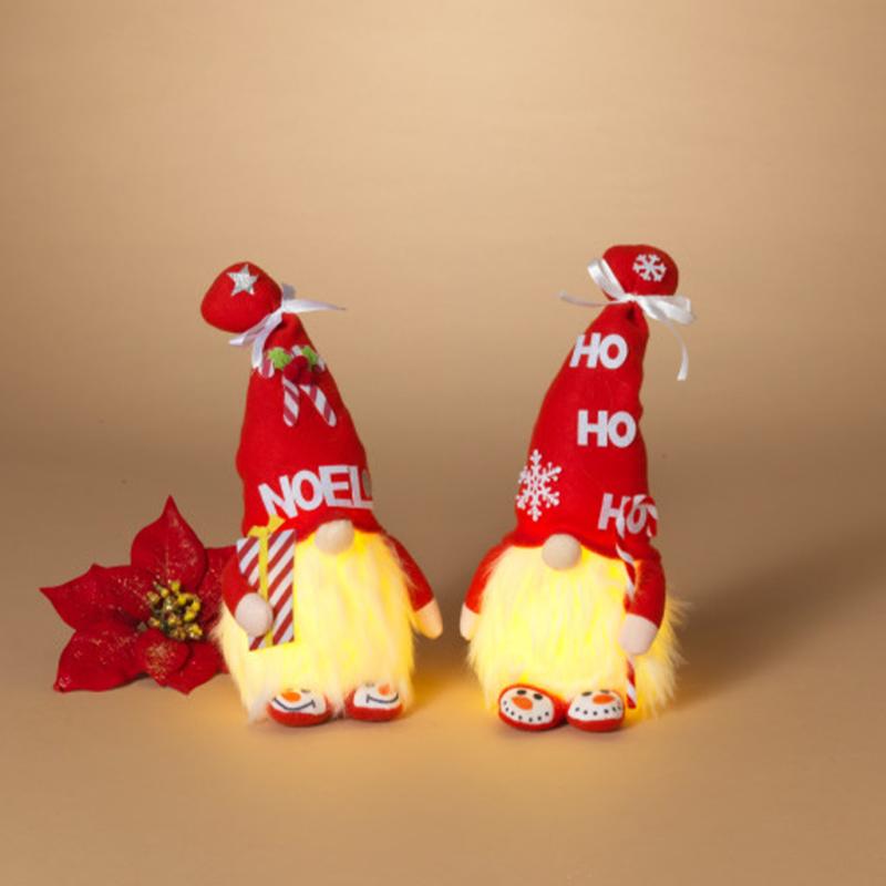 12.6"H Battery Operated Lighted Plush Holiday Gnome, 2 Assorted