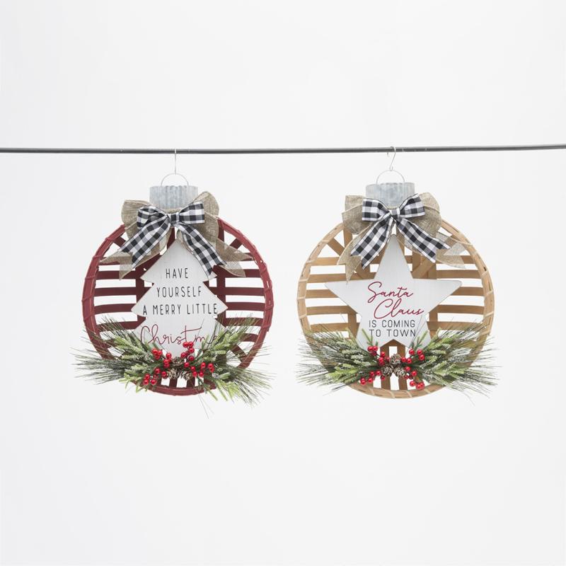 Plaques Wood Basket Wall Decor w/Greens Asstd