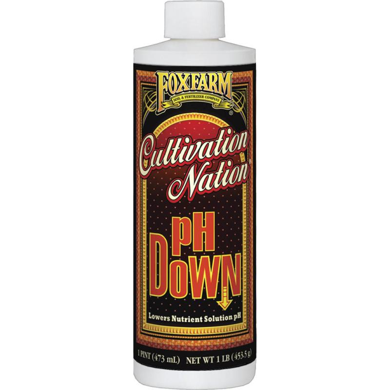 Formulated with citric acid. For use in both soil and hydroponic environments.Use Cultivation Nation pH DOWN to lower the pH of your nutrient solution in both soil and hydroponic environments. An ideal pH range for growing plants is 5.6 - 6.8.