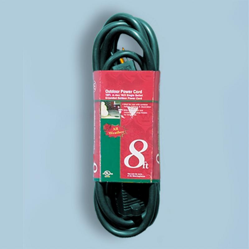This 8 foot single outlet green UL extension cord has 16/3 SJT wire