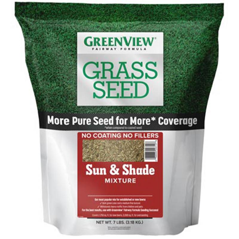 Description: GreenView Fairway Formula Sun & Shade Grass Seed Mixture provide a balanced variety for optimal performance in sun to partial shade. These type of seeds spread over time to form a thicker lawn. Approximate germination is 7 to 10 days. 3 lb. bag covers 750 sq. ft. for new lawns and 1,500 sq. ft. for overseeding. Contains: Charismatic II Perennial Ryegrass, Rodin Tall Fescue, Aberdeen Creeping Red Fescue and Wildhorse Kentucky Bluegrass.