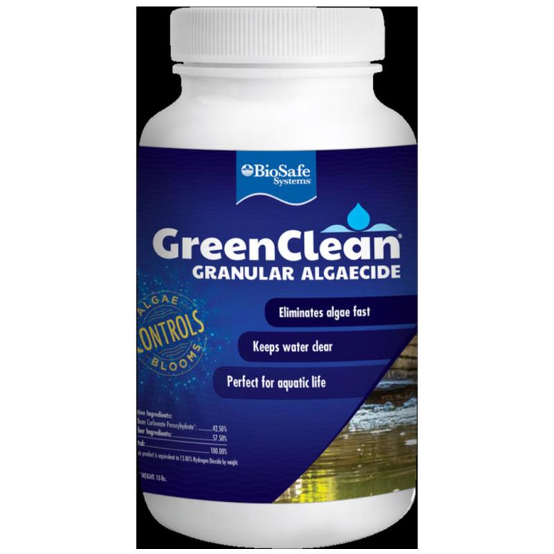 | Through the power of oxidation, Greenclean Granular Algaecide breaks down algae cells on contact. You can see it working. Its unique organic chemistry immediately begins fighting algae blooms and releases vital oxygen into the water as it biodegrades. Perfect for ponds, fountains and waterfalls. Made in the USA. |