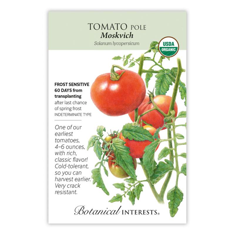 | Moskvich' translates to "inhabitant of Moscow", paying homage to the area where it was bred in the early 1970s (more information inside packet). After a winter without homegrown tomatoes, it will be the first one you will harvest, as it withstands cool weather. At the end of the hot summer when temperatures cool off, it is the last to slow down in production of full-size, garden-fresh fruit. |