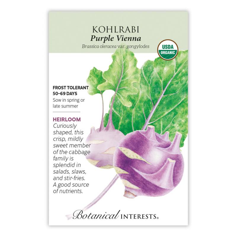 | Because of its turnip-like appearance, kohlrabi is sometimes misclassified as a root vegetable. Leaves stand out like little spokes on the sides and top of the edible, enlarged stem. You'll welcome not only kohlrabi's unusual shape, but also its crisp texture and wonderful, delicately sweet, nutty, and very slightly peppery. Eat it like an apple, or try it steamed, sautéed, or pickled, too! One cup contains 140% of the recommended daily allowance of vitamin C. |
