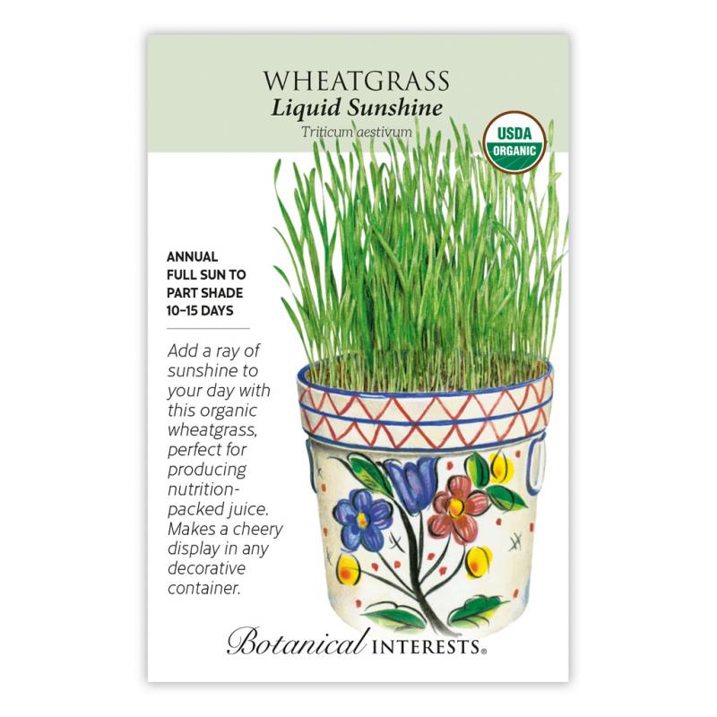 | Wheatgrass juice contains an abundance of nutrients. The seeds, also known as hard red winter wheat, germinate rapidly into beautiful greens that can be juiced; the juice is packed with vitamins, minerals, and chlorophyll. Be sure to save some seeds from sowing for beautiful greenery in indoor containers for table centerpieces (especially to nestle eggs in at Easter!). Unfortunately, these seeds cannot be sold in Pennsylvania according to state regulations. |