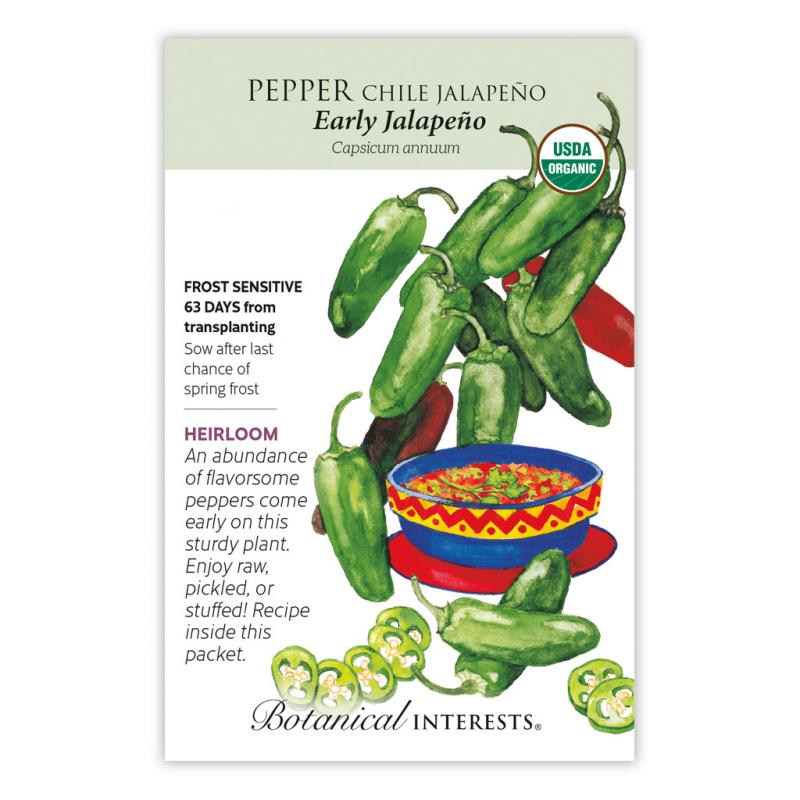 | Lots of bold flavor in a small, 3" pepper, 'Early Jalapeño' is better adapted to cooler climates than other jalapeños. Incredibly versatile, they're hot enough to add a little kick to your favorite dish, but mild enough for any meal. Enjoy green or allow to ripen to red for a sweeter, bolder flavor. Jalapeños rate 2,500–5,000 Scoville heat units (medium hot). |