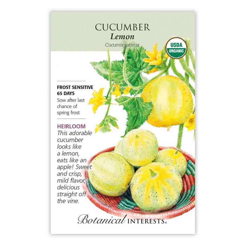 | A gardener's favorite since 1894 but hard to find in grocery stores, this unusual, eye-catching, lemon-sized cucumber has excellent flavor and is a great slicer or pickler. It is scrumptious eaten with the skin and all just like you would an apple; non-bitter and burpless. Plants are more drought tolerant than other varieties. |