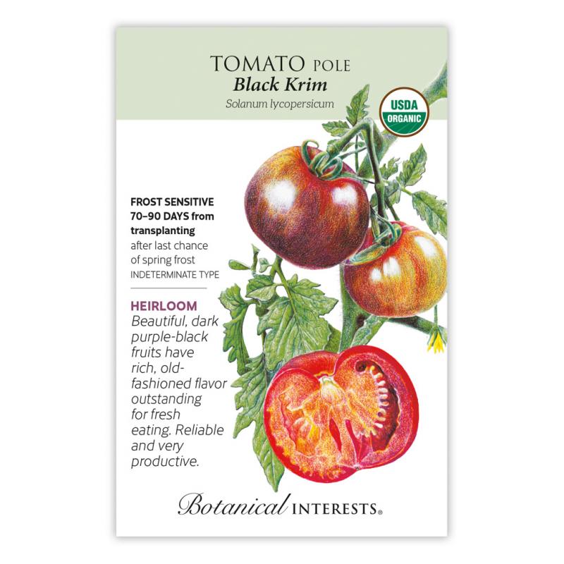 | This Russian heirloom originated in Krymsk on the Black Sea in Russia. Baseball-sized fruits weigh 10–12 ounces and have reddish-brown flesh filled with a rich, slightly salty flavor. Fruit sets well in heat and is a reliable "black" tomato, producing even under adverse conditions from summer to fall. Provide support for plants that can reach 6' or more. |