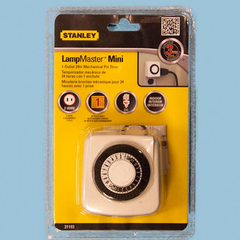 Stanley's "TIME IT MINI" Has one grounded outlet. It allows program repeats daily, with multiple ON/OFF settings possible, which can be set in 30-minute intervals.