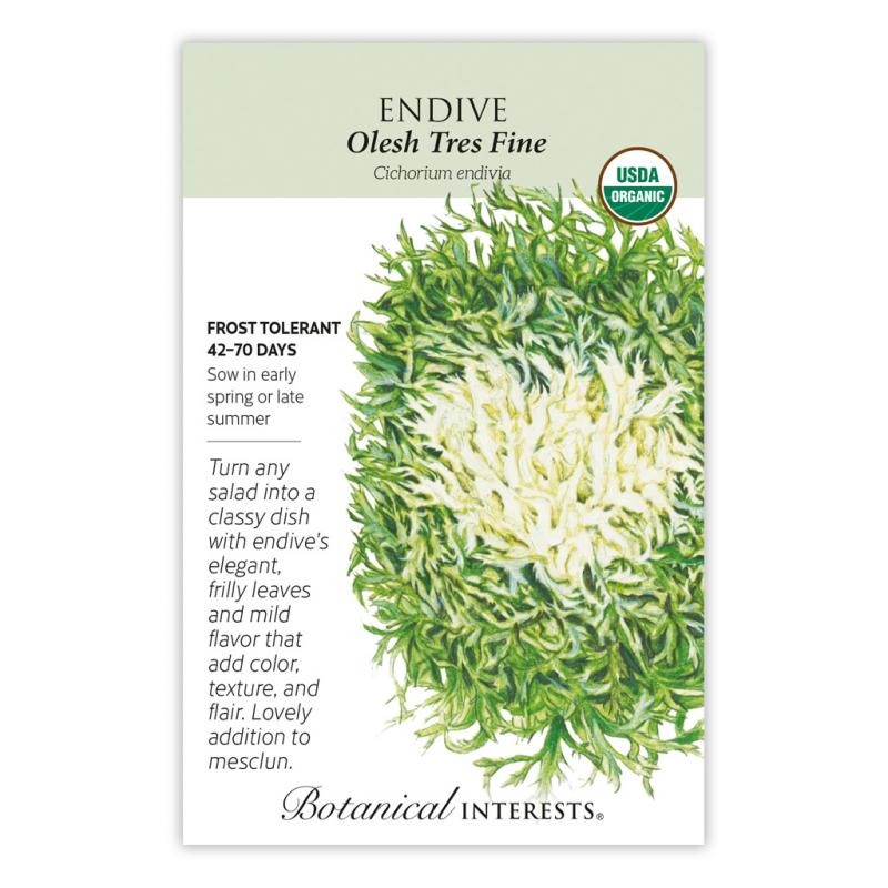| Also called frisée, endive's beautiful lacy leaves will turn ordinary lettuce salad into an upscale, bistro mesclun. The mild flavor blends well with other greens and the crisp, finely cut leaves add interesting texture. Use in the flower garden for an exquisite ornamental. |