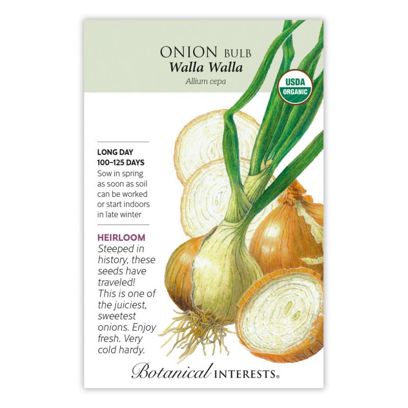 | Famous for it's juicy sweetness, 'Walla Walla' onion seeds traveled from the coast of Italy to Walla Walla, Washington. One of the best onions to enjoy fresh! Long-day onion, but can be grown as an intermediate-day onion because it matures early. High yield and enormous bulbs, make sure to use shortly after harvest. |