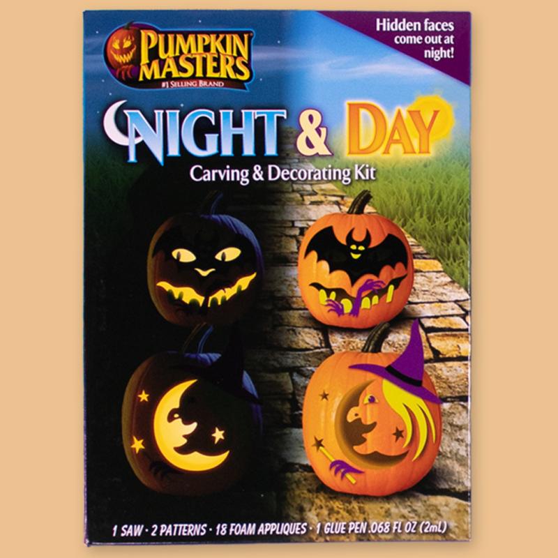 | Pumpkin Masters #1 kid's carving kit with specially designed tools. It includes the kid-friendly DuraSaw, Scraper Scoop, quick pattern stencils, 4 pairs of eyes, and crayon. Great for ages 6+. |