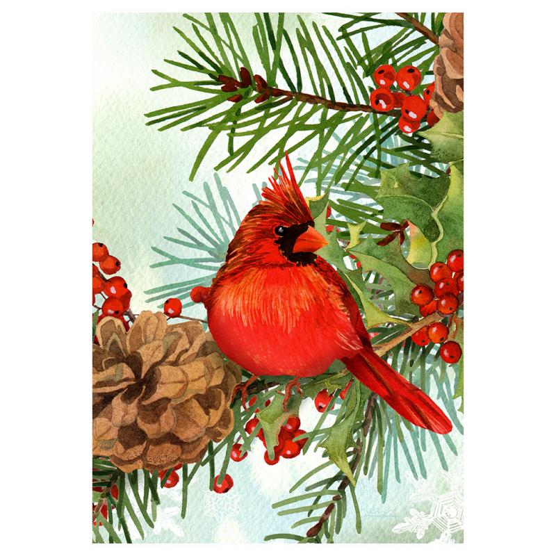 | This Cardinal / Pines Flag from Custom Decor welcomes you in the season. It is one of their gorgeous double-sided flags, proudly printed here, in-house, in the USA! Each flag is printed using fade-resistant ink on luxurious, velvety, soft, heavyweight fabric, creating a beautiful drape showcasing its stunning design. |