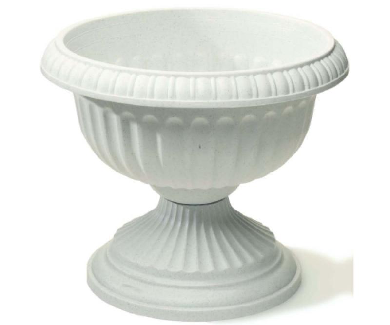 Add this beautiful urn to your patio. Its classic, simple, elegant Grecian design combined with a natural look of stone in durable, economic polypropylene makes this urn a backyard imperative.