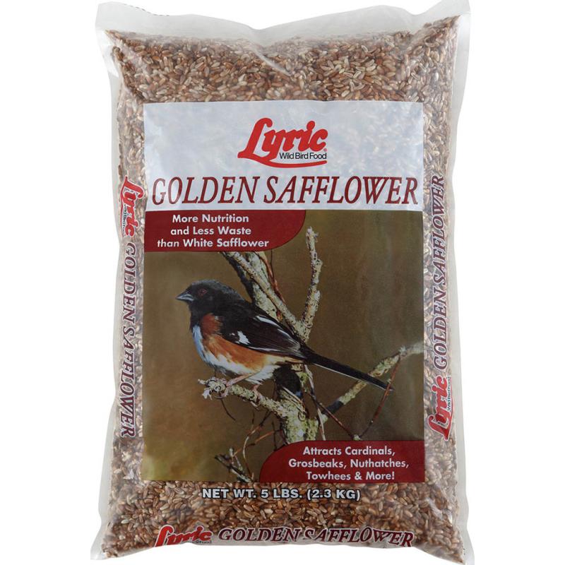 Lyric Golden Safflower features NutraSaff safflower, an organic, chemical-free hybrid safflower. It has an extremely thin hull making it easier for birds to eat and digest. Safflower is not a favorite of squirrels, helping keep them away.