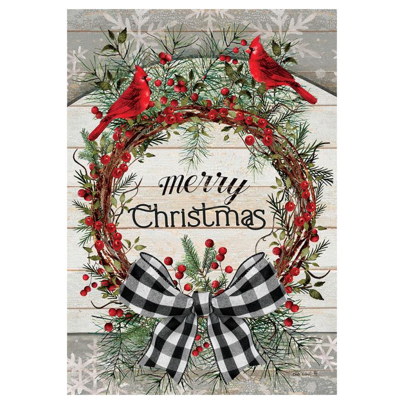 | This Merry Christmas Berry Wreath Large Home Flag from Custom Decor welcomes you in the season. It is one of their gorgeous double-sided flags, proudly printed here, in-house in the USA! Each flag is printed using fade-resistant ink on luxurious, velvety, soft, heavyweight fabric, creating a beautiful drape showcasing its stunning design. |