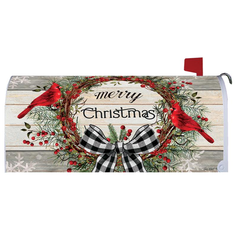 | This Merry Christmas Berry Wreath mailbox makeover from Custom Decor is made of brightly colored, beautifully designed, all-weather vinyl. Its UV-cured ink is printed right here in the USA. The mailbox makeovers come with Magnetic strips for easy attachment to any standard-size metal mailbox. |