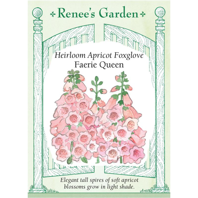 | (Digitalis purpurea) EXCLUSIVE - These classic, elegant cottage garden flowers thrive happily in filtered sunlight or sun-dappled corners. Faerie Queen has multiple spires packed with thimble-shaped, elongated bells in pastel apricot with delicately speckled, creamy throats. The tall flower stalks bloom effortlessly above large, leafy bases from late spring to early summer, adding a magical, fairy-tale quality to the garden. Cut Faerie Queen for enchanting bouquets of graceful form and soft color. |