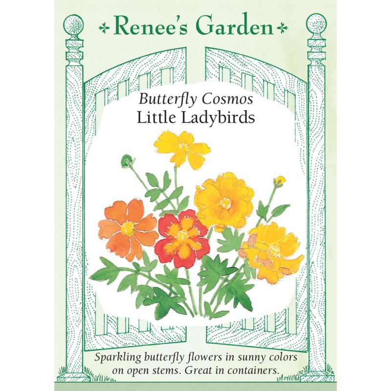 | (Cosmos sulphureus) These beautifully different Little Ladybirds Cosmos are carefree bloomers with jaunty, sparkling, semi-double flowers on short, open branching plants that spread as wide as they are tall. The bright colored blossoms shine in wonderful crayola orange, clear butter yellow and rich scarlet. No pastels here, just warm sunny colors on pretty plants that attract butterflies like magnets and fill patio containers and summer beds and borders with cheerful season-long charm. |