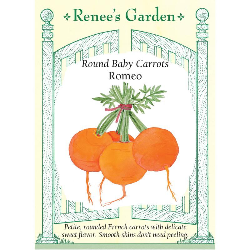 | EXCLUSIVE – These petite, ball-shaped beauties are extra-tasty morsels that can be enjoyed in just a few bites, with excellent sweet flavor and a crunchy texture. Delicious little Round Romeos have smooth-skinned orange flesh that needs no peeling; it's fun to eat them right in the garden. These baby gourmet carrots are perfect for containers because they don't need deeply prepared soil like other carrot root crops. Romeo carrots are easy to grow and perform well for both spring and fall planting. |