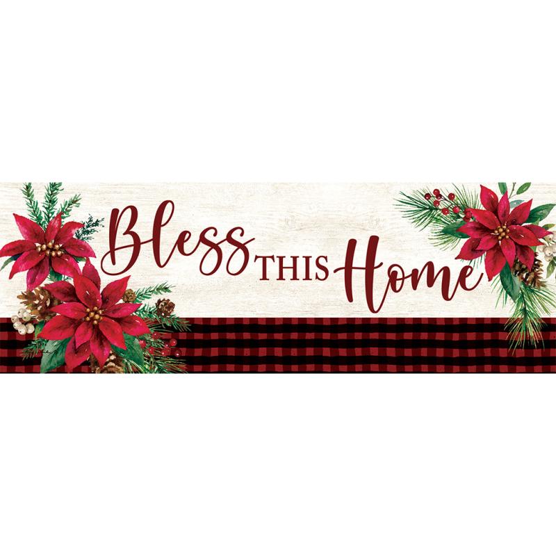 | Bless This Home Pointsettia Buffalo Plaid-Signature Sign from Custom Decor is printed in the USA. It is printed with 15”x 5” PVC signature signs that are perfect for adorning any garden with colorful, beautiful designs. Each is UV-cured for excellent weather-resistant quality and slides seamlessly into our exclusive wrought iron Signpost. Signposts are sold separately. |