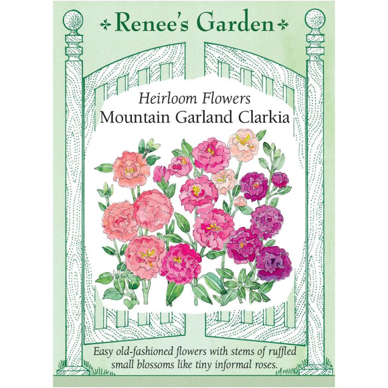 | (Clarkia elegans) Native to California, easy-growing Mountain Garland Clarkia is one of my favorite American wildflowers. The multiple flower stems are covered with ruffled ribbons of small blossoms, each shaped like tiny informal roses. These fluffy 2 to 3-foot-tall wands of color fill the late-spring garden in pretty soft shades of coral, salmon, rose-pink, lilac, and pure white. Beautifully adapted to home gardens, the abundant, graceful blooms are perfect for informal bouquets. Monet would have loved them in his gardens at Giverny! |