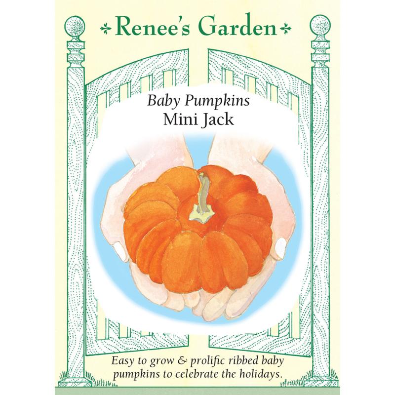 | (Cucurbita pepo) EXCLUSIVE - Easy to grow and very reliable, Mini Jack Baby Pumpkins mature much earlier than their bigger cousins, rewarding you with armfuls of 3 to 4 inch, deeply ribbed fruits that are accurate old-fashioned miniatures. Kids (of all ages) love them, and they make welcome gifts, colorful holiday decorations, and centerpieces. These happy little beauties are also deliciously edible; bake them whole for individual servings of stuffing, cranberry sauce, or pumpkin soup presented right in their bright orange shells. |