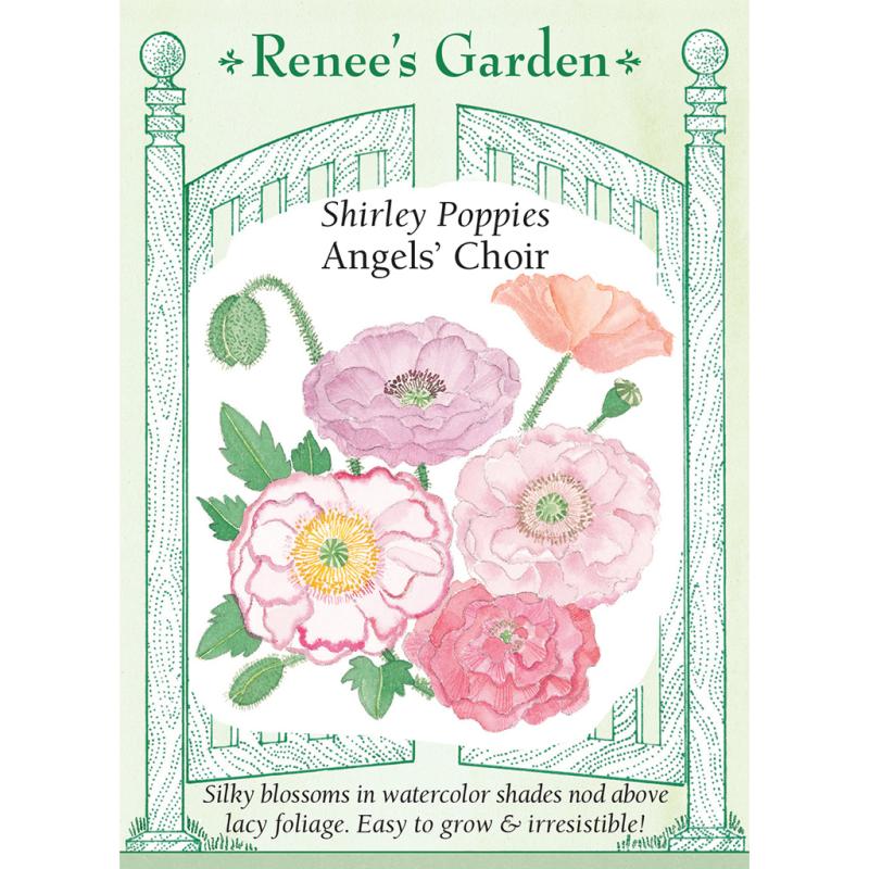 | (Papaver rhoeas) This award-winning combination of silken-petaled, double poppies features shimmering watercolor shades including cream, apricot, peach, coral, lavender, pink and bicolors and picotees. It took breeders years to develop these lustrous colors. Exquisite in the garden as the blossoms sway gracefully on nodding 3 foot tall stems above frothy gray-green foliage. These easy-to-grow and irresistible flowers are the perfect way to welcome the joys of spring and other words to fill. |