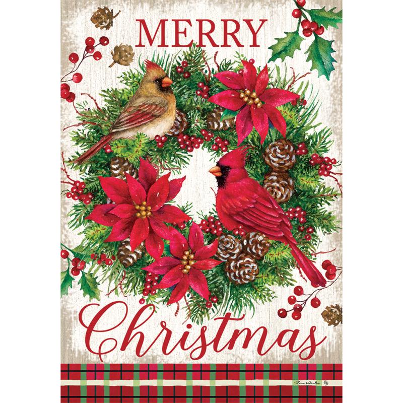 | This Cardinal Wreath Garden Flag from Custom Decor welcomes you in the season. It is one of their gorgeous double-sided flags, proudly printed here, in-house, in the USA! Each flag is printed using fade-resistant ink on luxurious, velvety, soft, heavyweight fabric, creating a beautiful drape showcasing its stunning design. |